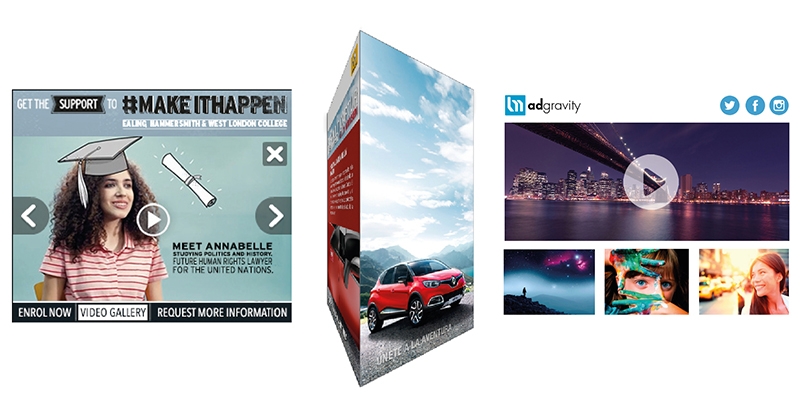 Los diseños de carteles son billboards de doble panel que incluyen el nombre del producto y el precio en un lado y la imagen al otro. La animación en este caso se daría durante la introducción.