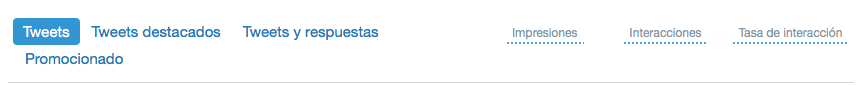 En esta opción puedes encontrar las siguientes opciones referentes a la actividad de tus tweets: