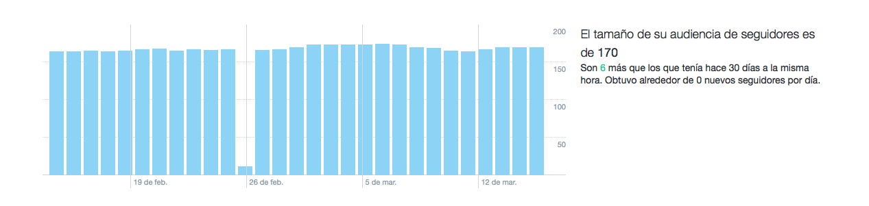 En primer lugar, Twitter Analytics te aportará un gráfico para que puedas hacerte una idea del desarrollo de tu cuenta. Así observarás si crece o no el número de seguidores.