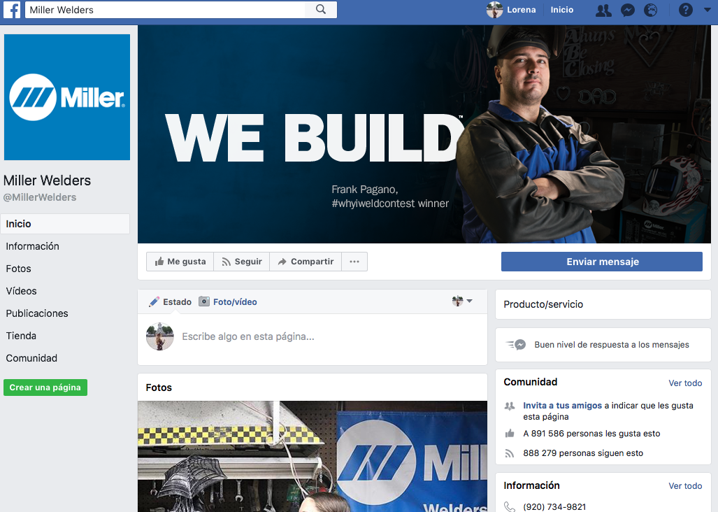 Miller Electric Welders es una empresa que se dedica a vender productos relacionados con la soldadura y cortes. Y en este caso, la empresa ha apostado por crear diferentes perfiles en redes sociales. Específicamente en Facebook y Twitter.