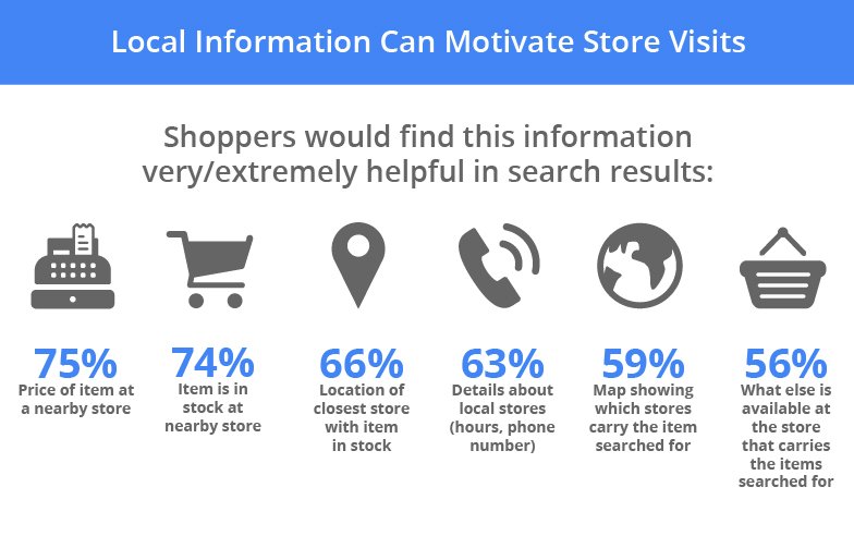 Un estudio llevado a cabo por Google reveló que 3 de cada 4 compradores que encuentran información local en los resultados de búsqueda aumentan las probabilidades de visitar las tiendas. Y entre los tipos de contenidos que los consumidores consideran más útiles se encuentran:
