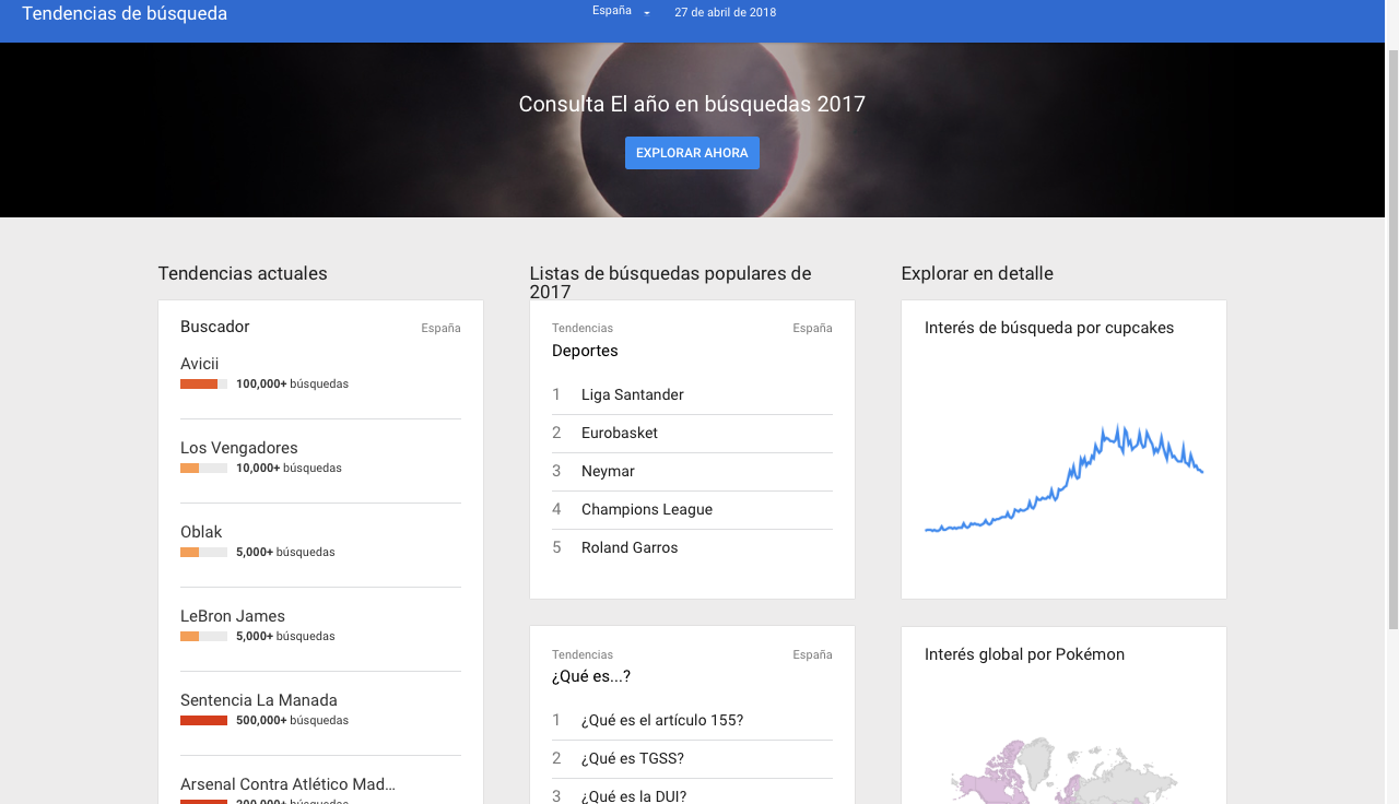 Google Trends es, probablemente, el método más accesible para utilizar Big Data. Esta herramienta muestra temas de actualidad al cuantificar la frecuencia con la que se introduce un término de búsqueda particular en relación con el volumen de búsqueda total.