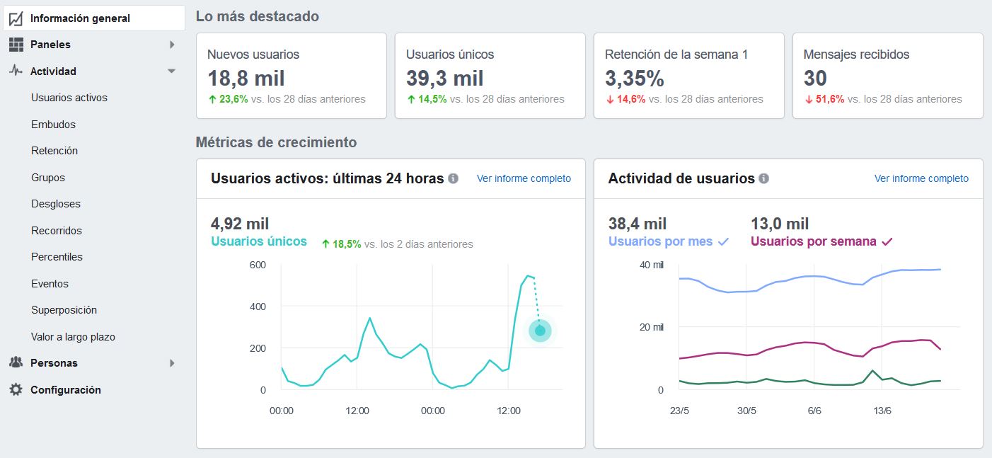 Es fundamental monitorizar las campañas para poder ir adaptándolas y conseguir los objetivos que te hayas marcado. Facebook cuenta con su propia herramienta de análitica, aunque, como se ha mencionado antes, tener el pixel de Facebook integrado en la web te será de gran ayuda para esta tarea.