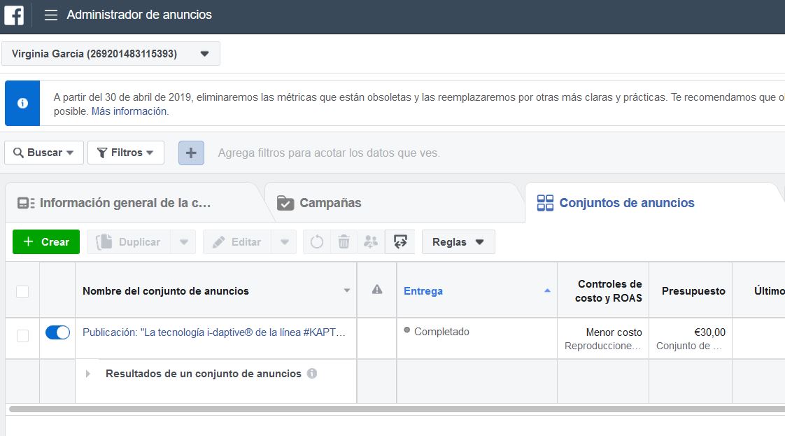 Es muy recomendable hacer distintos grupos de anuncios y, a su vez, crear distintos anuncios para cada uno de los grupos cambiando imágenes, textos, CTAs, copys etc. Esto te permitirá, a través del análisis de campañas, ver cuáles funcionan mejor para ir adaptándote y consiguiendo resultados óptimos con tus anuncios.