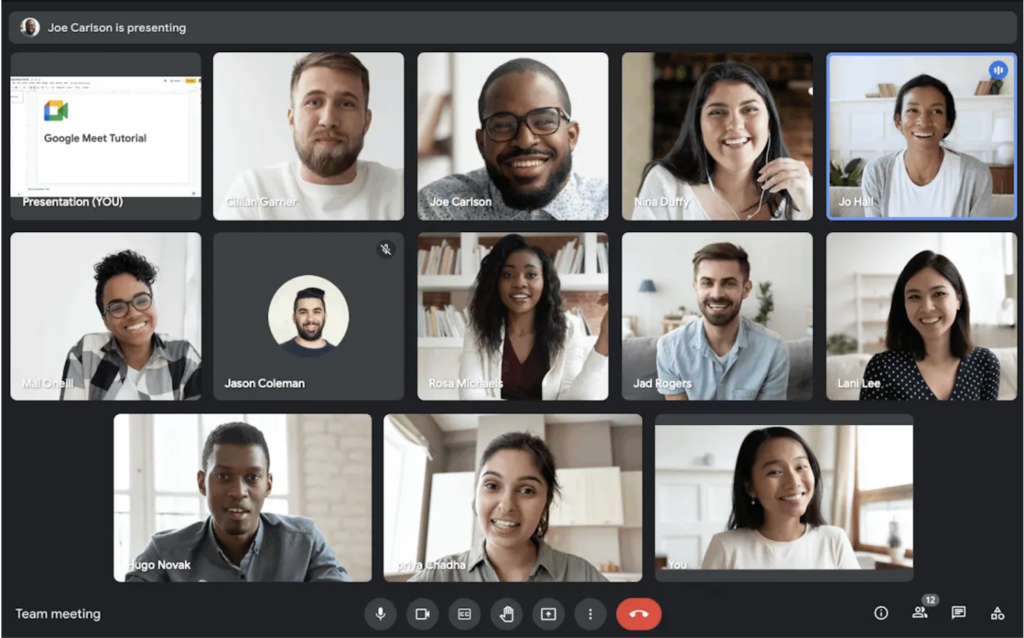 - Google Meet: Esta herramienta de Google es ideal para usuarios que ya están en el ecosistema de Google Workspace. Sin embargo, en su versión gratuita tiene limitaciones importantes, como una menor duración en reuniones grupales (60 minutos) y capacidades más restringidas para la gestión avanzada de reuniones, en comparación con Zoom.