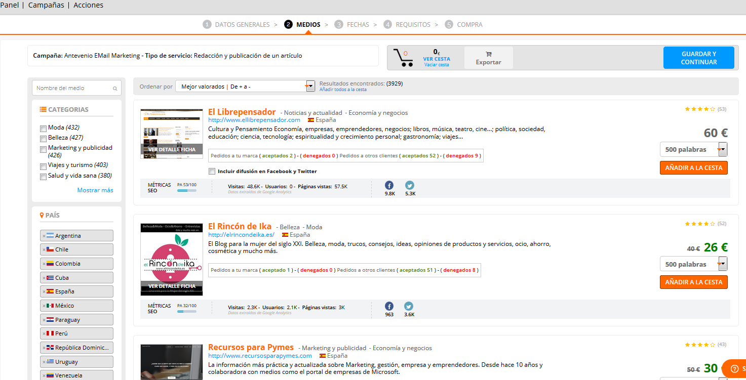 Selecciona los medios que más encajan con tus necesidades y presupuesto y solicita que te escriban y publiquen un post.
