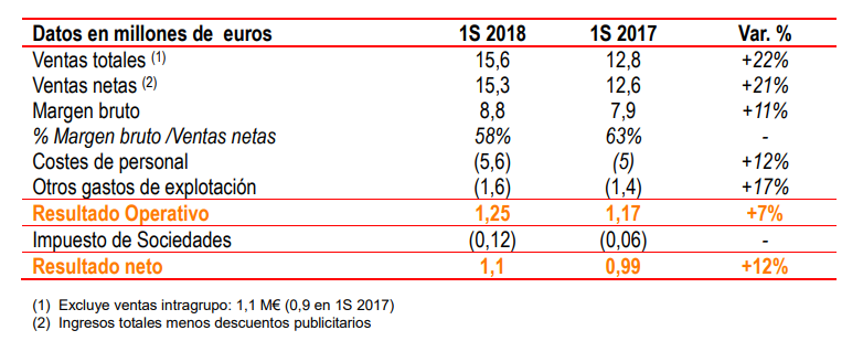 Acabamos de publicar los resultados del primer semestre del 2018: ¡aumentamos nuestro beneficio un 12% y la facturación un 21% en comparación con el mismo periodo del 2017! La fortaleza del área de Tecnología y Servicios Asociados, unida a la integración de la estadounidense React2Media muestran un margen bruto de hasta el 58%. Todas las líneas de negocio han mejorado y los próximos pasos prevén mantener un ritmo de crecimiento rentable y acelerar las sinergias con EE.UU.