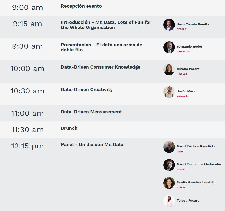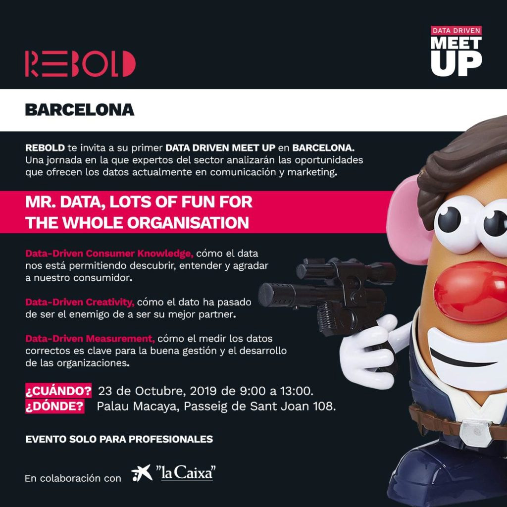 Sobre este maravilloso, y por qué no, curioso mundo versa el ‘Data Driven Meet Up de Barcelona‘; ‘MR DATA, LOTS OF FUN FOR THE WHOLE ORGANISATION’, que se celebra el próximo 23 de octubre en el Palau Macaya (Passeig de Sant Joan,108) de la Ciudad Condal y que está organizado por Rebold, empresa de comunicación y marketing basada en el análisis de datos del Grupo ISP. Un evento en el que se tratarán las oportunidades que ofrecen los datos a día de hoy, con el objetivo de hacer un marketing y comunicación mucho más relevante para los consumidores.