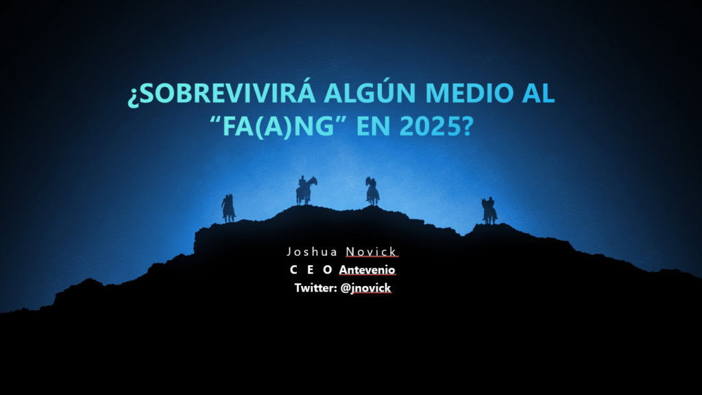 Con el auditorio del Forum de Barcelona a rebosar, la charla de Joshua «¿Sobrevivirá algún medio al «FANG» en 2025?» no dejó a nadie indiferente. Novick presentó una realidad a 10 años totalmente disruptiva en el sector de los medios donde 4 gigantes mundiales, propietarios de los datos, se quedan con casi todo el pastel: Facebook, Amazon, Netflix y Google. Éstos arrollarán al resto de medios, independientemente de su magnitud, que no sean capaz de adaptarse y transformarse.