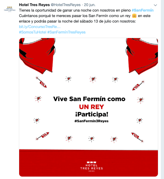Así, este hotel comienza una de las mejores campañas inspiradas en San Fermín. Y lo hace lanzando un concurso que promociona en sus redes sociales.