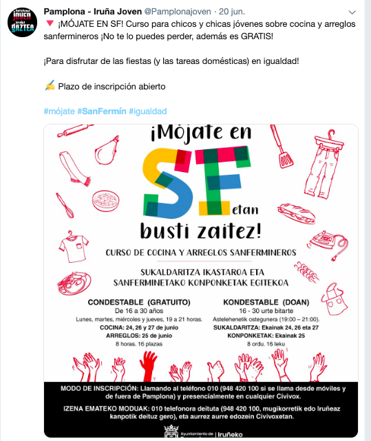 Así, ofrecer un curso en el que el coctel sea gastronomía y arreglos sanfermineros es todo un acierto. Con ello además promueve el movimiento de igualdad.