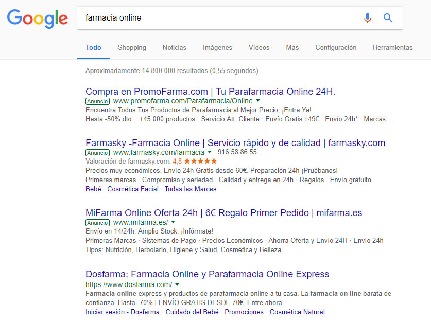 Por otra parte, no hay que olvidar que se trata de un sector con muchas restricciones y limitaciones, por tratarse de productos relacionados con la salud y con el ámbito de la medicina. A causa de estas restricciones, en el sector farmacéutico solo se pueden realizar campañas, tanto offline como digitales, sobre medicamentos que puedes adquirir por cuenta propia, es decir, sin receta médica.